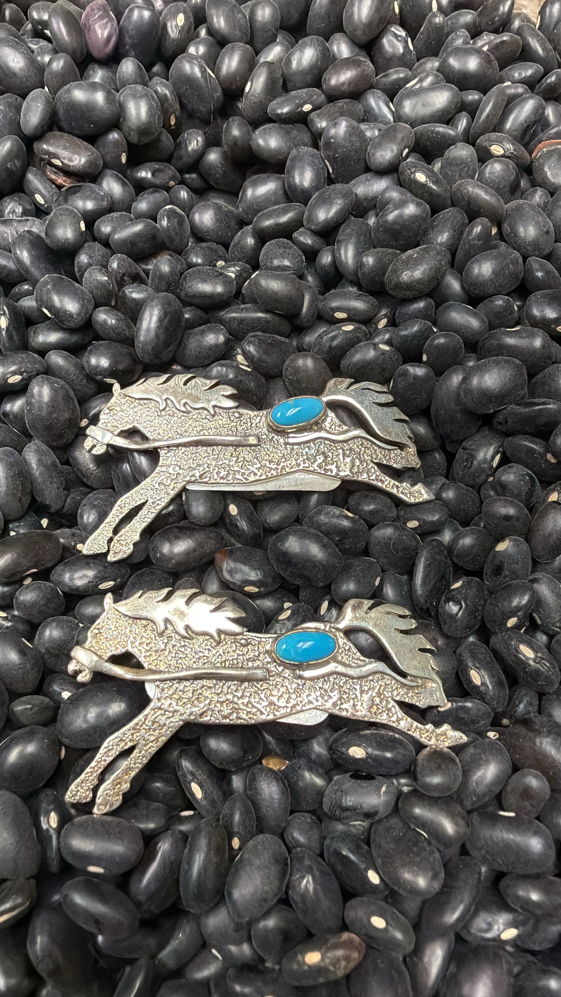 Sterling silver and kingman turquoise made by Navajo silversmith Benson Shorty.